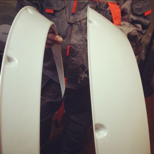 All fender flares made of black or white fiberglass and should be painted to match car's color.