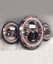 7" AMERICAN FLAGS RED HALO SET PROJECTOR HARLEY DAVIDSON DAYMAKER LED HEADLIGHT LAMP FOR HARLEY AND OTHER MOTORCYCLE MODELS