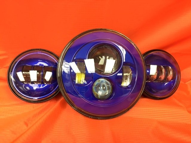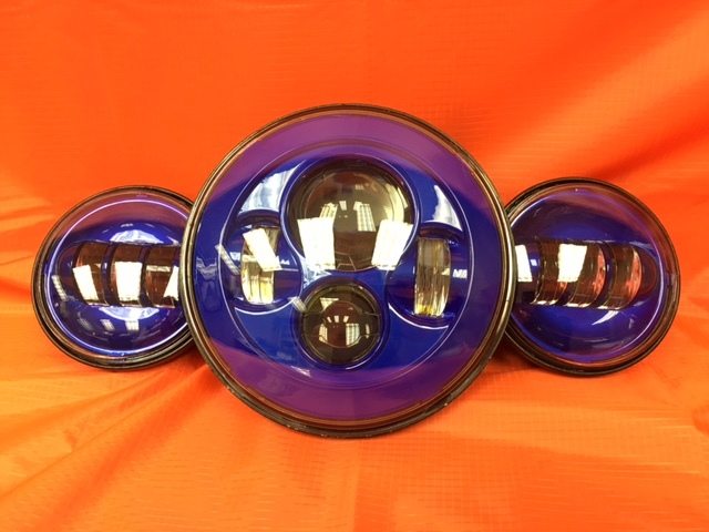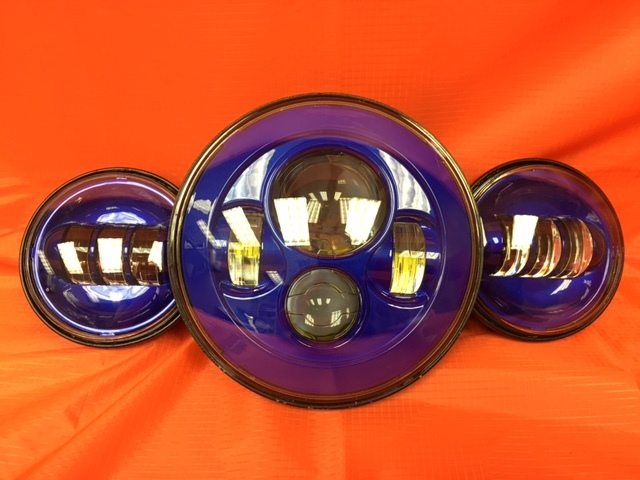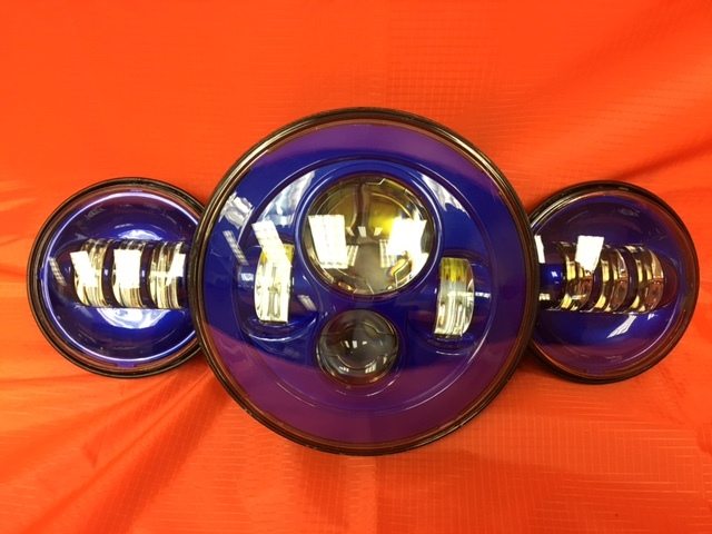 7" DAYMAKER BLUE Headlight Blue Dual 4.5" - 4 1/2" Auxiliary AUX Spot Passing LED Fog Lights Bulb Harley SET