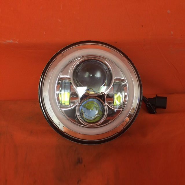 THIS IS A LED PROJECTOR HEADLIGHT WITH A HIGH INTENSITY BRIGHT WHITE LEDS SURROUNDED BY A HALO RING COMMONLY KNOWN AS THE HARLEY DAVIDSON DAYMAKER!