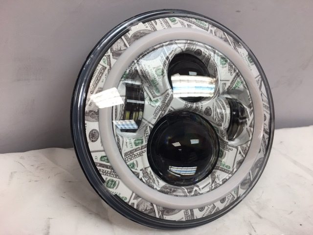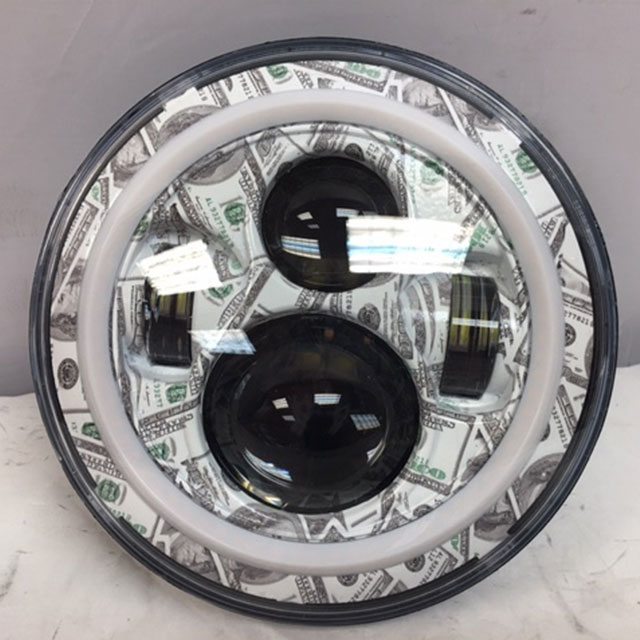 7" Custom Big Money Design Daymaker With Orange Halo PROJECTOR HARLEY DAVIDSON DAYMAKER LED HEADLIGHT LAMP FOR HARLEY AND OTHER MOTORCYCLE MODELS