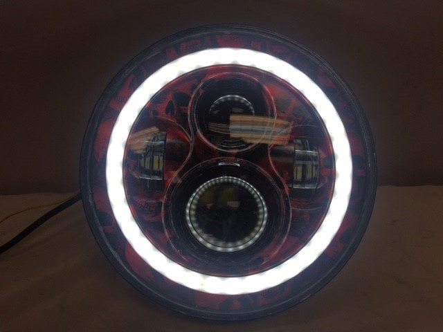7" Custom RED Skull Design With White Halo PROJECTOR HARLEY DAVIDSON DAYMAKER LED HEADLIGHT LAMP FOR HARLEY AND OTHER MOTORCYCLE MODELS