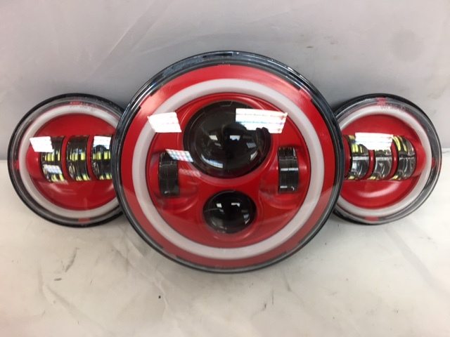 7" DAYMAKER Red With Red HALO Headlight Dual 4.5" - 4 1/2" AUX Black Spot Passing LED Fog Lights Bulb Harley SET