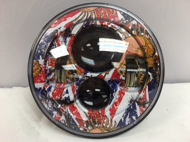 7" Custom Design British Skulls PROJECTOR HARLEY DAVIDSON DAYMAKER LED HEADLIGHT LAMP FOR HARLEY AND OTHER MOTORCYCLE MODELS