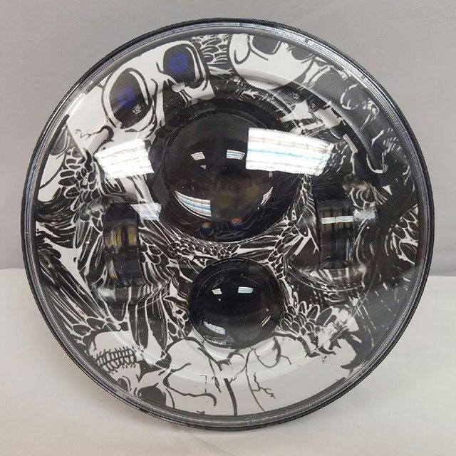 7" Custom Colored Skulls Design PROJECTOR HARLEY DAVIDSON DAYMAKER LED HEADLIGHT LAMP FOR HARLEY AND OTHER MOTORCYCLE MODELS