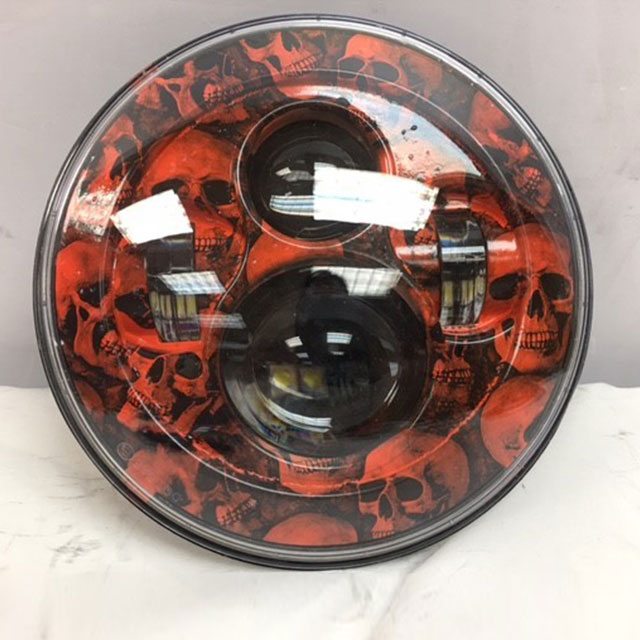 7" DAYMAKER Replacement Custom Orange Skull Design Projector HID LED Light Bulb Headlight Motorcycle Harley