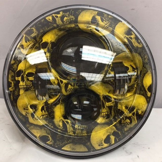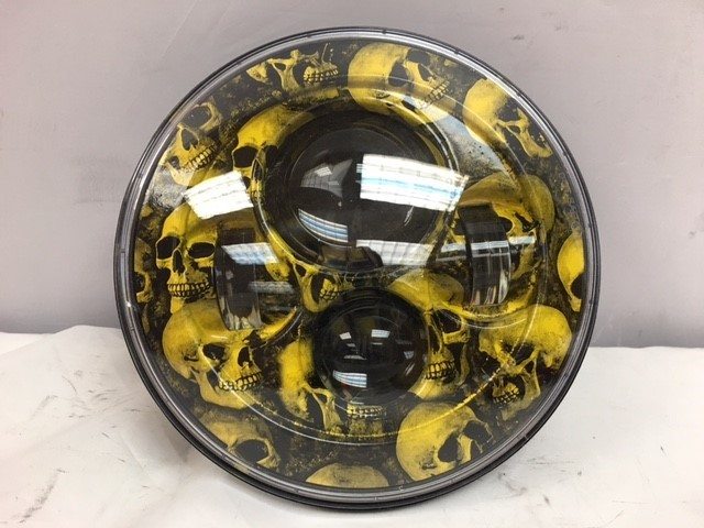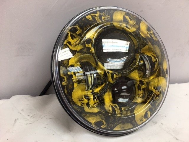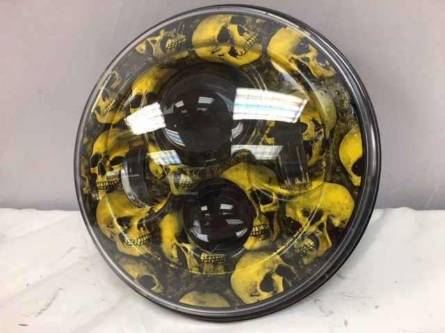 7" Custom Yellow Skull Design PROJECTOR HARLEY DAVIDSON DAYMAKER LED HEADLIGHT LAMP FOR HARLEY AND OTHER MOTORCYCLE MODELS