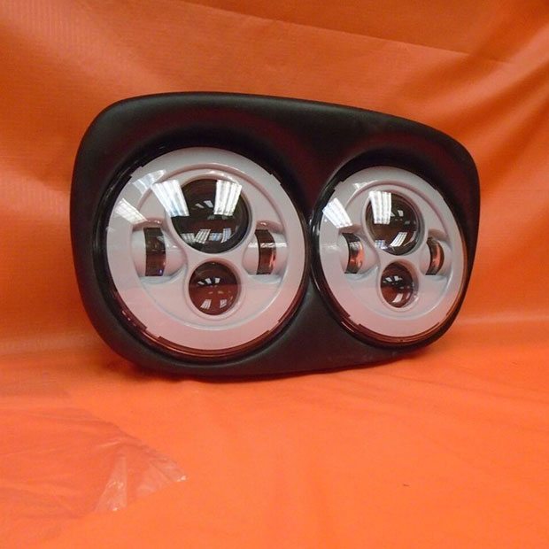THIS IS A LED PROJECTOR HEADLIGHT WITH A HIGH INTENSITY BRIGHT WHITE LEDS COMMONLY KNOWN AS THE HARLEY DAVIDSON DAYMAKER!